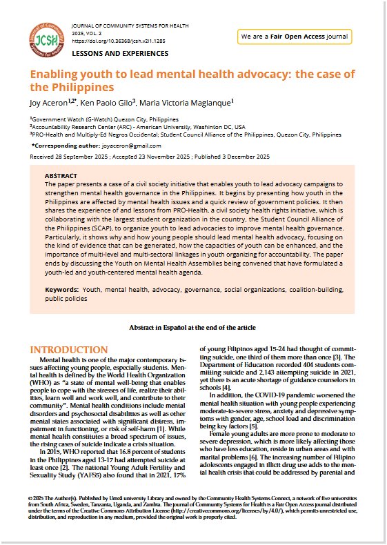 Published by: Accountability Research Center, CEGSS, REDC-Salud