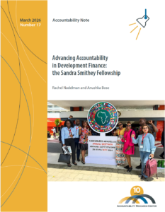 Advancing Accountability in Development Finance: The Sandra Smithey Fellowship, Accountability Note, by Rachel Nadelman and Anushka Bose, also in French and Spanish.