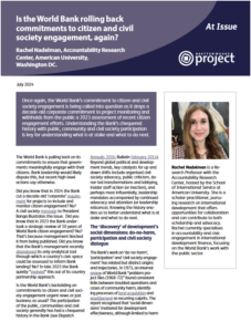 Is The World Bank Rolling Back Commitments to Citizen and Civil Society Engagement, Again?, article, Bretton Woods Project At Issue, Rachel Nadelman
